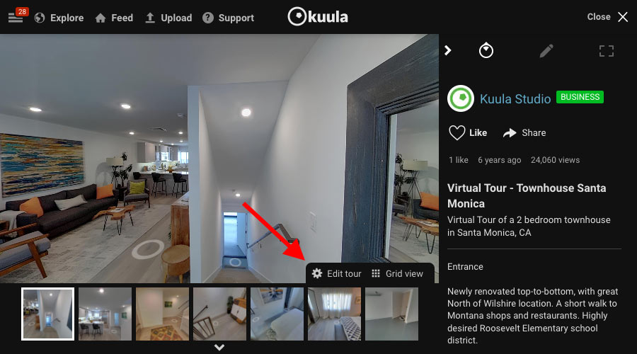 The Tour Menu can be used to add shortcuts to one or more "hero" posts in the tour. It can be the first post in the tour (the "Home" post), one or more floor plans or any other post that you deem important for the tour navigation. The latter category may include, for example, a lobby in a hotel, an entrance to a store or the main living room in a house or a condo.